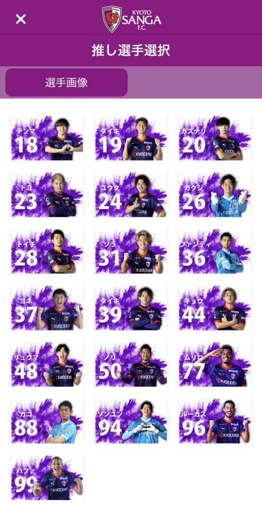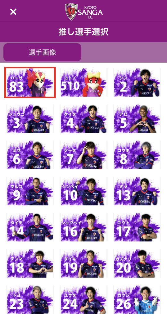 そこからお気に入りの推し選手やマスコットを選び設定することができます。